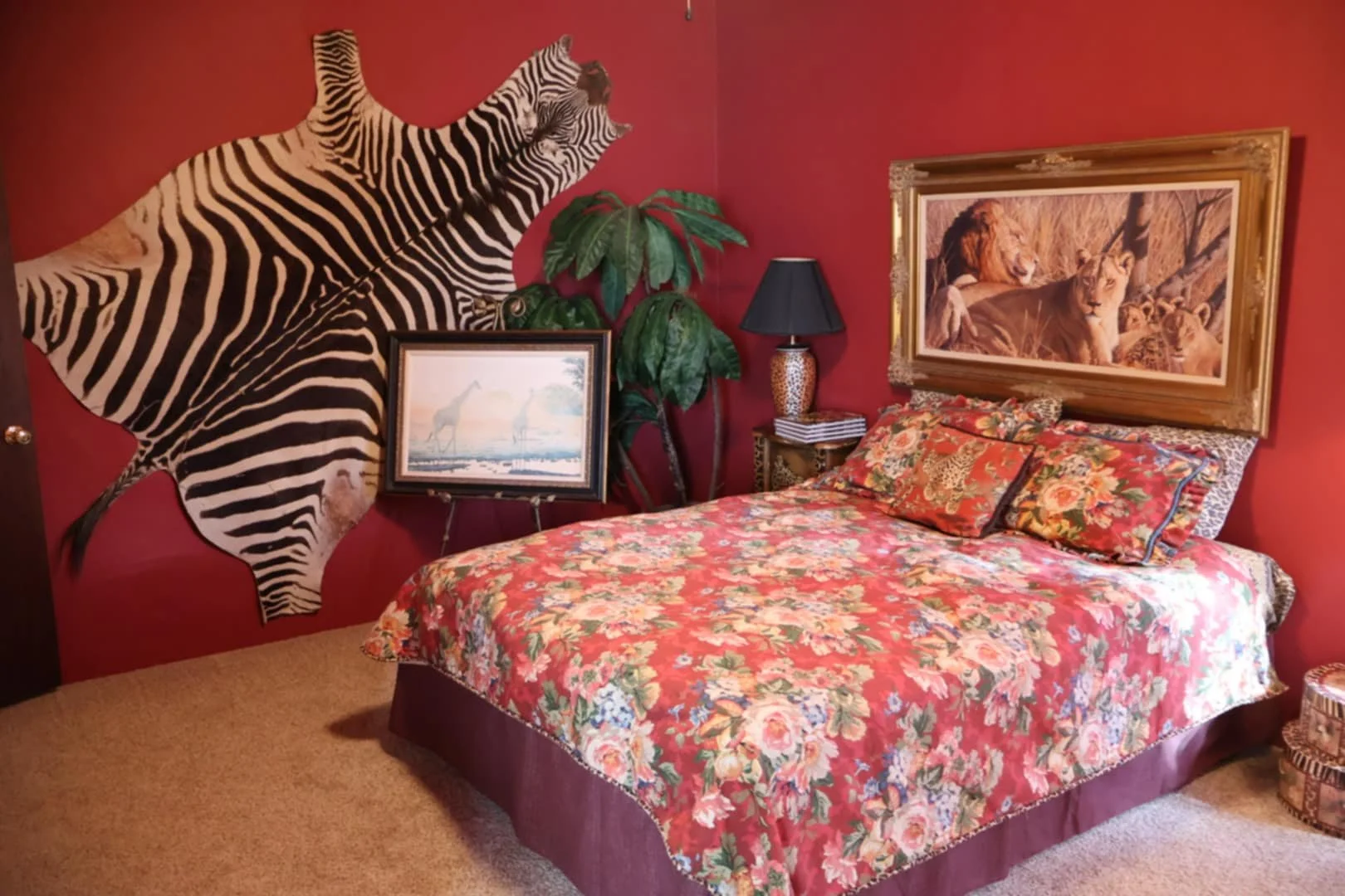 Inspired by Stephen Koury, a wildlife artist. Stephen was born in Holbrook, Az, but currently resides in Florida where he continues to spread his passion for art. This room brings a piece of Africa to you as it is surrounded by a large painting created by Stephen along with a zebra hide from a safari in Africa. Stephen has led African photo safaris and has won many awards. Stephen has been featured in many museums across the World and had been a spotlight in magazines. Attached to the room is a bathroom filled with safari animals and animal prints along the walls. We bring the wildlife to you! Learn more about Stephen at